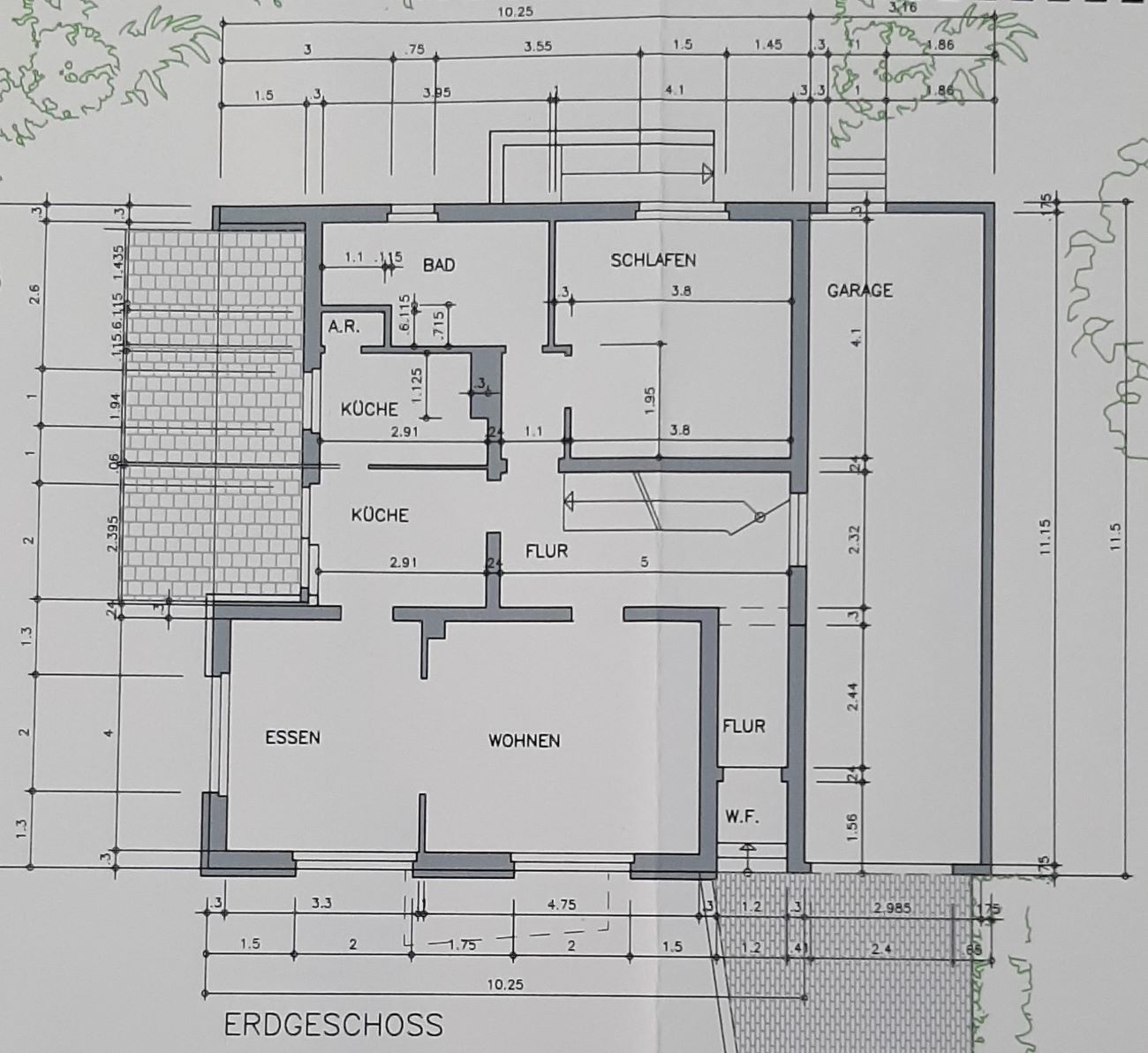Die sehr große Garage (ca. 11,15 m. Länge), mit zusätzlichem Ausgang zum Garten, wurde im Jahr 1992 in Massivbauweise angebaut.